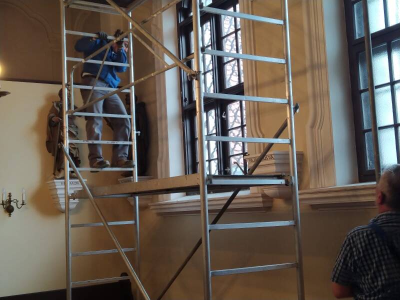Die ersten Vorbereitungsarbeiten haben begonnen, für die Restaurierung der Fenster in der Barbara-Kapelle